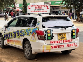 The Mutisya Driving School has great facilities and vehicles to offer an excellent experience for the youth! They learn both theory—mainly inside on boards—and then they get out and put it into practice (see photos above).